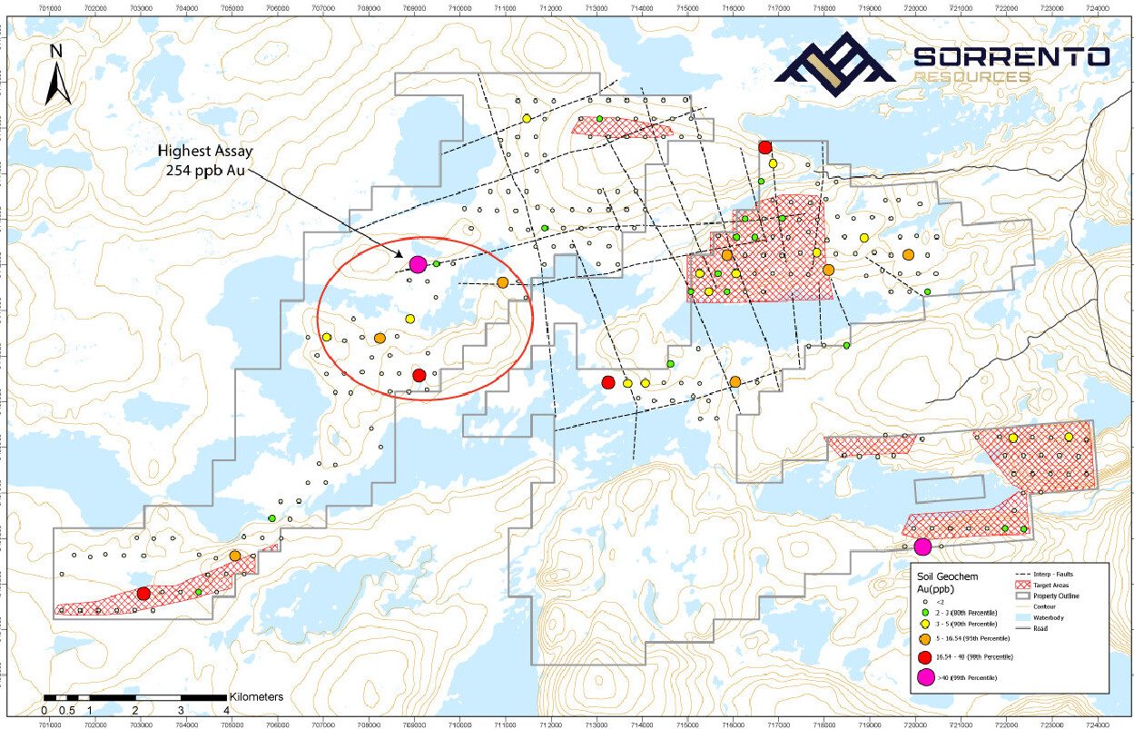SORRENTO RESOURCES RESULTS FROM GEOCHEMICAL SAMPLING ON THE WING POND PROPERTY