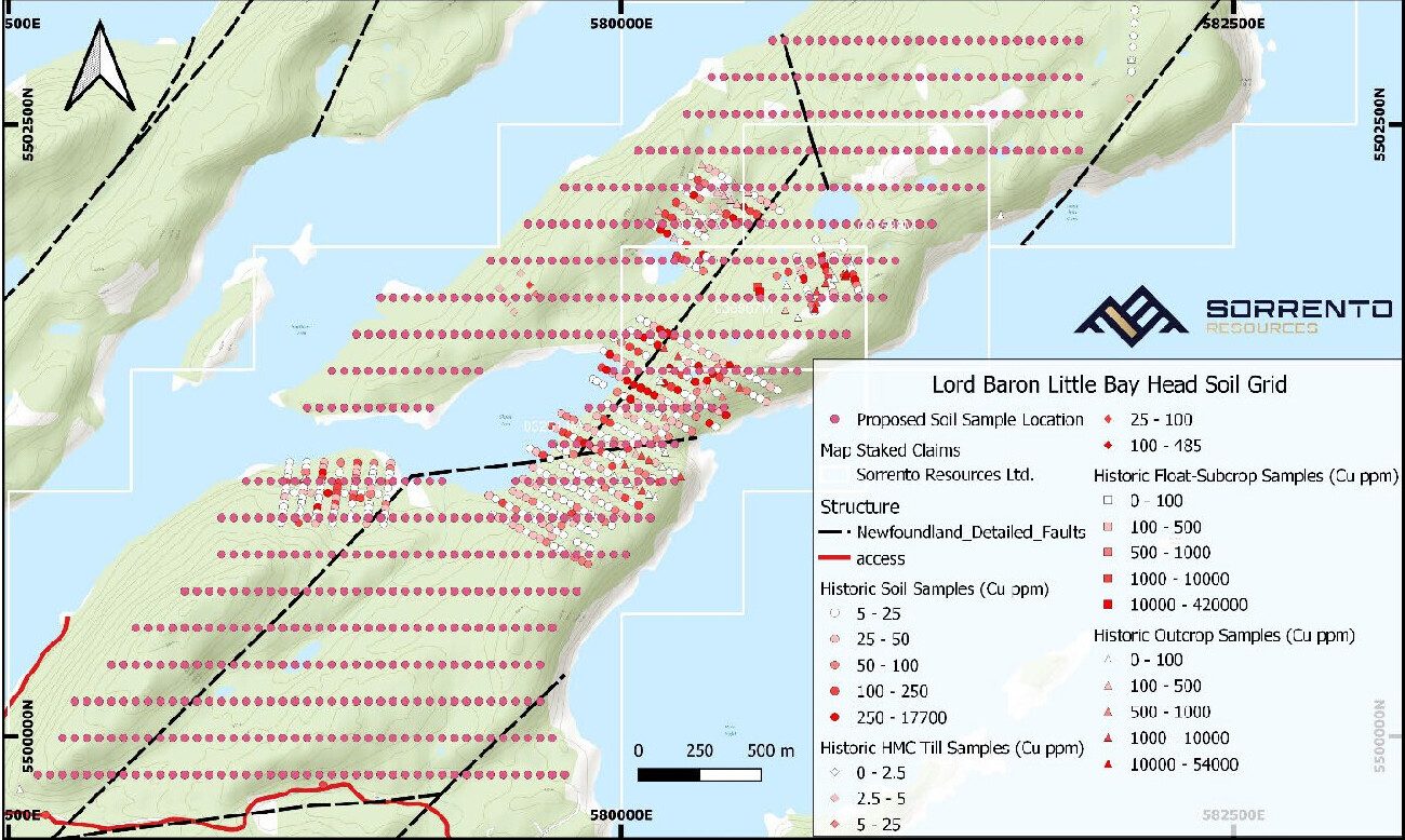 Sorrento Resources Announces Commencement of Soil and Rock Sampling on the Copper-Gold Lord Baron Project, Newfoundland